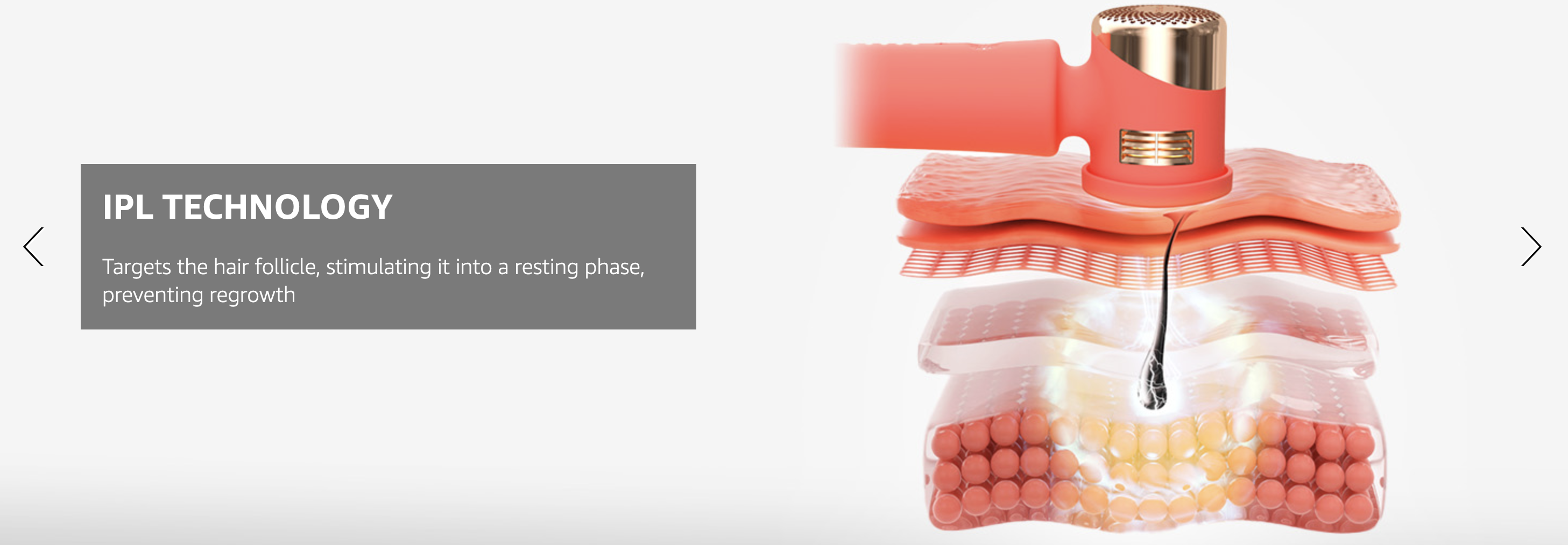Foreo Peach 2 sử dụng công nghệ ánh sáng xung cường độ cao (IPL) với năng lượng lên đến 7.3 J/cm². Nhờ đó, máy có khả năng ức chế tận gốc sự phát triển của lông, giúp vùng da được triệt trở nên mịn màng, sáng hơn chỉ sau vài tuần sử dụng đều đặn.